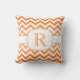 Orange Ombre and White Chevron Pattern Monogram Throw Pillow