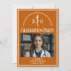 This orange custom osteopathic medical school graduation party invitation for a DO or an osteopath doctor features an osteopathic medical caduceus symbol and your college photo for the class of 2025. Customize with your graduating year in white typography for a great personalized university graduate photograph invite.