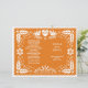 Pape orange Picado inséparables programme plié fiesta mariage. Il présente deux lovebirds blancs et un coeur d'amour avec le mot amour et fleurs, feuille et petits points sur le rouge sur la couleur orange. Ce style d'art folklorique mexicain à mariage fleuri design modèle est entièrement personnalisable. Utilisez seulement ce type de papier comme il se plie bien.