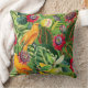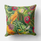 Orange Parrots in Tropical Flower Jungle Pattern Throw Pillow