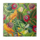 Orange Parrots in Tropical Flower Jungle Pattern Tile