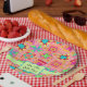 Great accent for an outdoor summer party. Bright colors, vibrant floral design