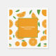 Napkins with a slice, half and full orange pattern. A customizable text is available at the centre on an orange background. A fresh decoration for a birthday party, a wedding, a housewarming party, a retirement, a bachelorette party, etc.