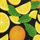 Orange slices and leaves. Seamless pattern. Custom background colour.
