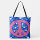 Orange Peace Sign on Blue Tote Bag