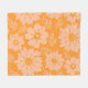 Warm orange and peach flower pattern blanket featuring vibrant tropical blooms, whimsical botanical motifs, and retro spring summer charm for a cheerful decorative accent.