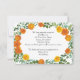 Belle pivoine orange et invitations à mariage florales roses avec une végétation abondante. Parfait pour un thème fleuri ou un mariage blanc traditionnel au printemps ou en été. Customisez la couleur et le texte pour que ce mariage vous invite !