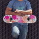 Orange Pink Blue Abstract Modern Paint Splashes Skateboard
