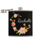 Flask featuring a black background with orange pink and green flowers and a custom first name monogram