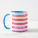Sunset orange and pink gradient striped mug with your personalized name in white.