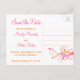 This bright orange, hot pink, and white floral postcard matches the wedding invitation shown below. All the text is customizable. If there are any other matching items you require, please email your request to niteowlstudio@gmail.com.