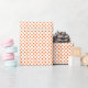 Wrapping paper with a polka dot pattern of orange dots on a white background. Perfect for any occasion. Customizable.