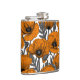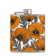 Orange poppies on white hip flask