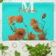 Printed with pretty and colourful artistic image of sunset orange poppy flowers in turquoise ocean colour background, with text templates for monogrammed initial and name. You may change the background colour as you like!