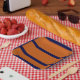 Great accent for an outdoor summer party. Bright colors, vibrant floral design