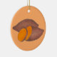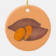 Ornament features an original marker illustration of a pair of delicious sweet potatoes, on an orange background.