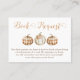 Pumpkin themed baby shower book request insert in natural tones featuring three pumpkins, two being in a plaid pattern and one with a floral arrangement. This little pumpkin baby shower books for baby card is ideal for an autumn or fall baby shower.