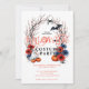 Make your Halloween party unforgettable with this fun, colorful, and fully themed invitation. The design features a decorative arch with dried chrysanthemums in red, dark blue, and black, accompanied by pumpkins, ghosts, bats, and spiders, creating a festive and playful atmosphere.