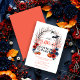 The back of the invitation has a vibrant orange background, adding a surprising and eye-catching touch that perfectly complements the front elements and enhances the Halloween aesthetic.