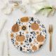 A delightful harmony of playful orange pumpkin and cute floral pattern, creating a charming blend of fall whimsy and natural beauty. This fun paper plate is the perfect way to say thank you to your friends and family and to add a touch of seasonal cheer to your Thanksgiving dinner party gathering.