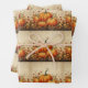 Wrapping paper sheets with a rustic illustration with orange pumpkins and fall leaves. An autumn grunge vibe.
