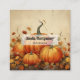 Business cards with a rustic illustration with orange pumpkins and fall leaves. An autumn grunge vibe.