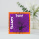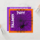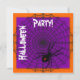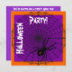 Fun Halloween party invitations are purple with an orange trim border. The front of the invitation also features a big black spiders web with a big black widow spider climbing on it. The text on the front is white and runs vertically and horizontally along the invitation. Text says Halloween Party! but can be changed if you wish. The reverse side of invitation is purple with white font. The text can be customized to suit your needs. These spooky Spider Web Halloween Invitations are a great way to spread the word about your upcoming Halloween party!