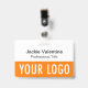 Personalize our professional PVC name badge with your company logo, employee name, job title, or other custom text. Available with a lanyard, metal clip, or retractable reel. Designed in orange and other colours with a modern minimalist design by MISOOK. All colours are customizable. The dimensions are 3.38 inch x 2.13 inch. No minimum order quantity and no setup fee.