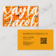 Orange Red Floral Check Pattern QR Code Handmade Business Card