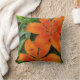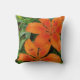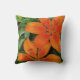 Orange-red flowers with green leaves throw pillow