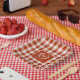 Orange-Red Gingham Monogram Crest Custom Paper Plate