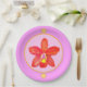 Orchids are statement flowers, from the simplest to the grandest. All of the orchids in this series were painted from real flowers using watercolor paints. This plate features a reddish orange flower with the tiniest bits of lavender and yellow. The background is lavender pale and palest! Festive, colourful and a terrific statement for parties, picnics, brunches, and all kids of festive, joyful gatherings in general.