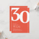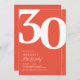 Introducing a fun orange red and white 30th birthday party invitation that seamlessly blends the old-world charm of the bold serif font number '30' with a modern, user-friendly personalizable template. This invitation isn't just a card, it's a meaningful keepsake to cherish the milestone of turning 30.