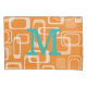Orange 60s retro pattern monogrammed pillowcase cover print pillowcase cover sleeve design for bed pillow. Vintage print home decorations with turquoise blue monogram name initial letter. Stylish typography design. Modern mod classic design bedroom decor for trendy women and girls. Personalizable with name, monogram, quote, slogan, saying etc. Custom colour background. Change size to big or small stripes. Cute colourful DIY gift idea for new home or housewarming party. Available in standard size or big oversized extra large king size. Make your own single or double set sleeve. Add your surname or last name letter. Unique wedding favour gift idea for newly weds couple, newlyweds hooneymooners, husband and wife anniversary, bride and groom etc.