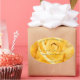 Make a lasting impression with this elegant and modern product label design featuring an orange rose blossom with pretty palm leaves and sparkling faux glitter stars.