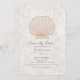 Perfect for a nautical themed wedding is this Rustic Seashell Wedding Save the Date Announcement with an orange seashell on a light beige marble look background. This classic and simple beach save the date invite is easy to customize with your wedding details. Find more personalization options by clicking Customize.