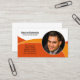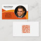 This professional card features an abstract orange and white background with all text on the front. A white back features a matching orange QR code placeholder for you to replace. Use the QR code link to send clients to a website, photos, reviews or other special location.