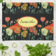 Orange Shabby Poppy Watercolour Tea Towel Black, with a fully customizable name. Using a beautiful original watercolor painting, I painted from the flowers in my own garden. This kitchen towel is a must for any garden or flower lover!