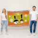 Orange Snowman Melt My Heart holiday throw blanket, so cute and colourful, features a polka dotted orange background with a circle polka dots on mustard, and a snowman and snow lady with big carrot noses and tall black stovepipe hats with a mustard heart that reads Snowmen Melt My Heart!