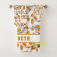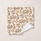 This cool soccer themed towel set features a random pattern of varied size orange and white soccer balls turned every which way on a white background - personalize the bath towel & hand towel with her name - by katz_d_zynes