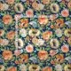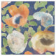 Colourful watercolor and pastel orange, white and pink anemones, poppies, roses and other spring flowers with pale green leaves on a picturesque dark blue background.