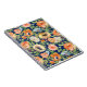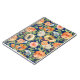 Colourful watercolor and pastel orange, white and pink anemones, poppies, roses and other spring flowers with pale green leaves on a picturesque dark blue background.