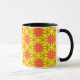 A fun pattern of orange starburst floral geometric shapes on a bright yellow background!