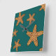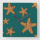 Orange Starfish Pattern Square Wall Clock
