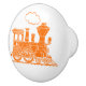 Brighten up boys doors and draws with these personalized orange train art pull knobs. Customise with your own choice of short name on the trains boiler plate currently reads Alex. Ideal for train themed boys bedrooms or to personalize draws and doors in shared kids rooms. Unique art and design by Sarah Trett.