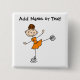 An adorable stick figure girl ice skater wearing an orange dress and an area you can easily add a name or other item to personalize this custom ice skating button.
