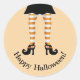 Orange Striped Witch Legs Happy Halloween Text Classic Round Sticker