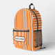 Backpack stripe design that you can customise with any text of your choice. Should you require any help with customising then contact us through the link on this page. Orange stripe design personalised backpack