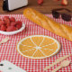 Paper plate as a modern, stylized slice of an orange, with detailed and textured segments - an original tropical fruit illustration created in Photoshop and Adobe Illustrator