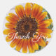 An orange sunflower photo fills this round sticker. Thank You is written in white script across the sticker.